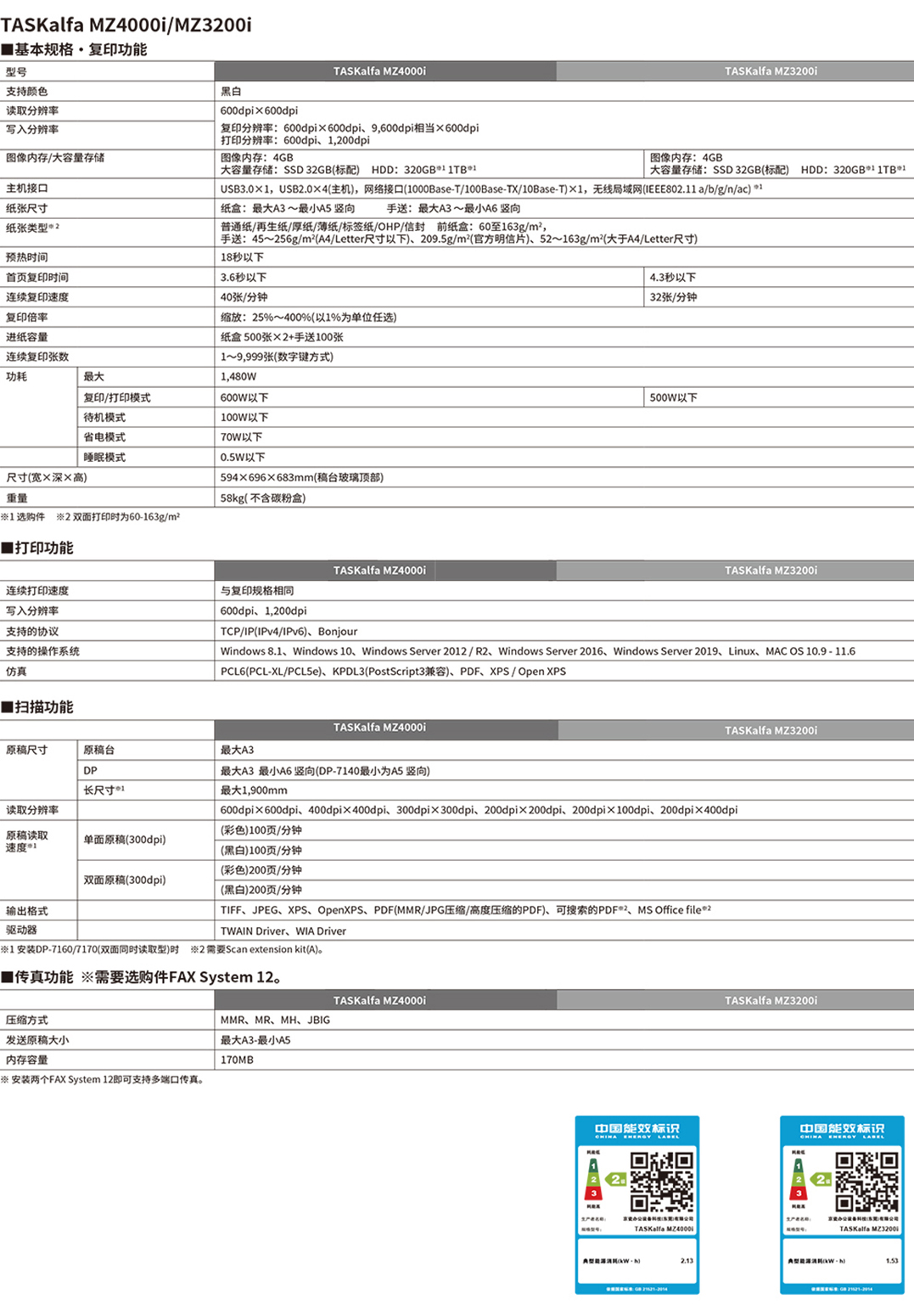 京瓷 黑白机 TASKalfa MZ4000i